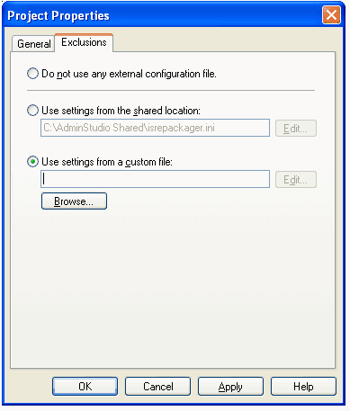 From the Repackager Project menu, select Properties. The General tab of the Project Properties dialog box opens.