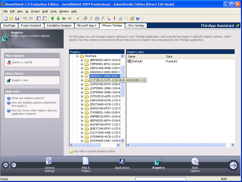 ThinApp Assistant Registry Page