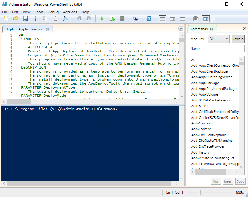 - If you selected the Edit script on wrapping option, the Windows PowerShell ISE application opens and you are prompted to edit the PowerShell script file that you just created.