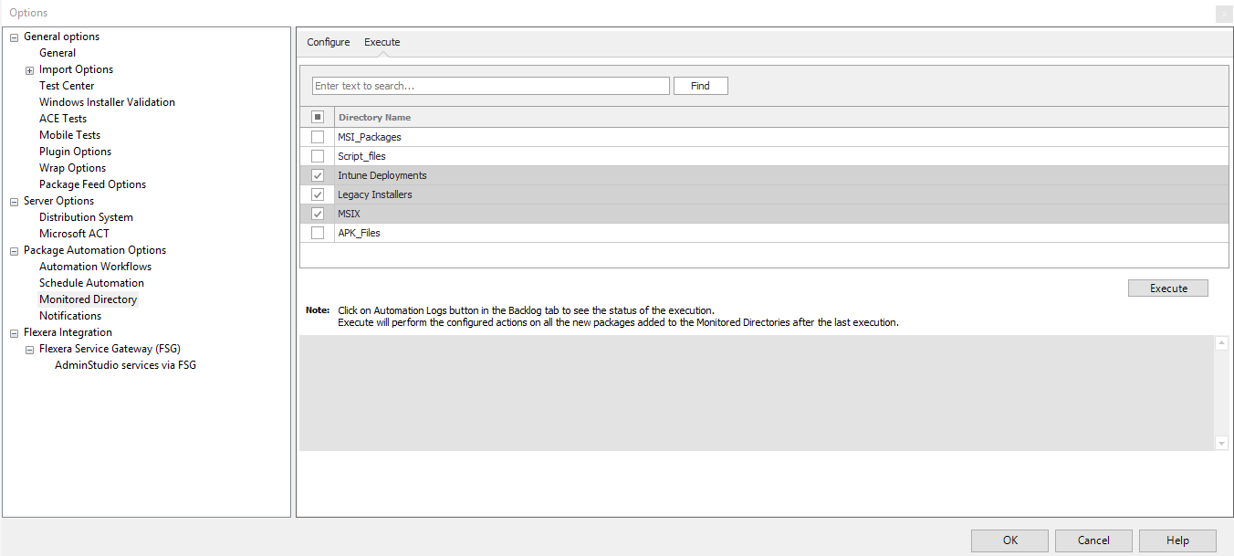 Under Package Automation Options, select Monitored Directory. The Monitored Directory dialog box opens.