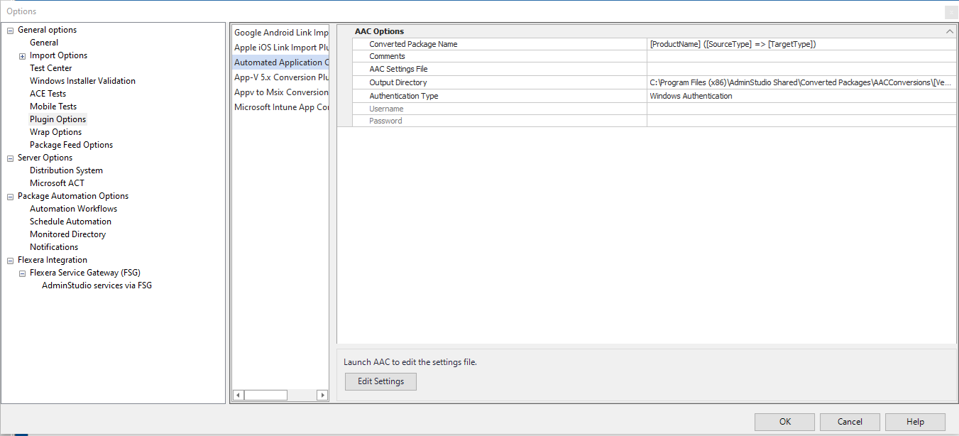 6. In the AAC Settings File field, browse to the Automated Application Converter settings file you created in Creating an Automated Application Converter Settings File.