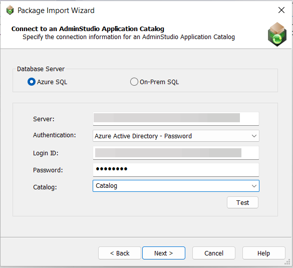 Select AdminStudio Application Catalog and click Next. The Connect to an AdminStudio Application Catalog panel opens. On the Connect to an AdminStudio Application Catalog panel, you have the following two options: