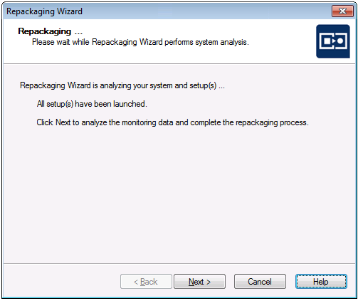 Depending on settings configured before starting repackaging, the analysis may stop following the initial phase, and again after setup has been run.